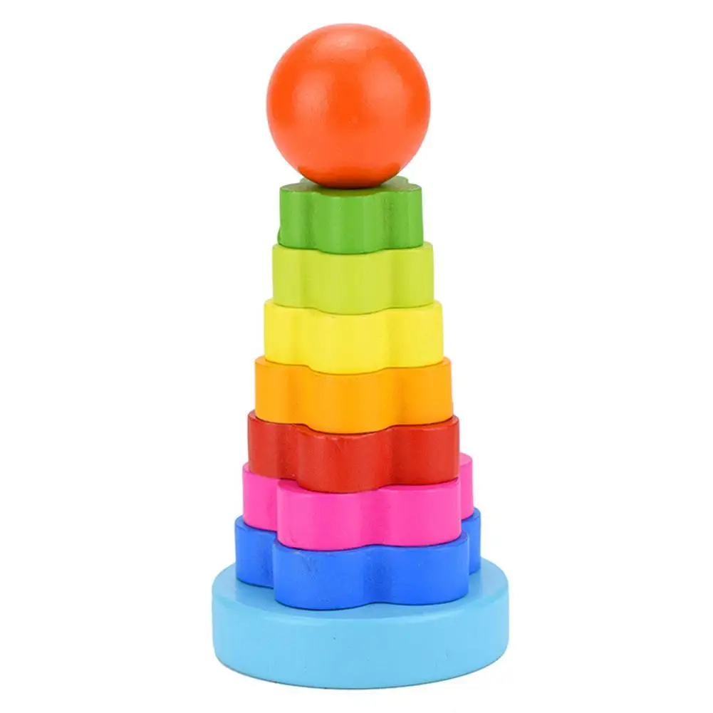 Baby Kid Education Wooden Toy Stacking Nest Learning Stack Up Rainbow Tower Ring Building Blocks Toys Gifts New