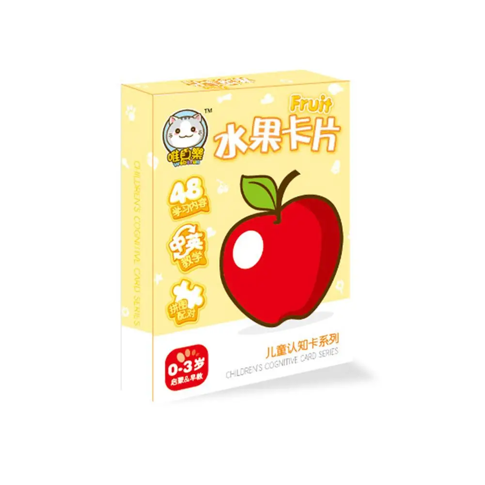 Addition Information of 48Pcs/Set Cartoon Kids Animals Fruit Number Vegetable Chinese English Learning Cards Baby Learning Toy Develop Intelligence Toys