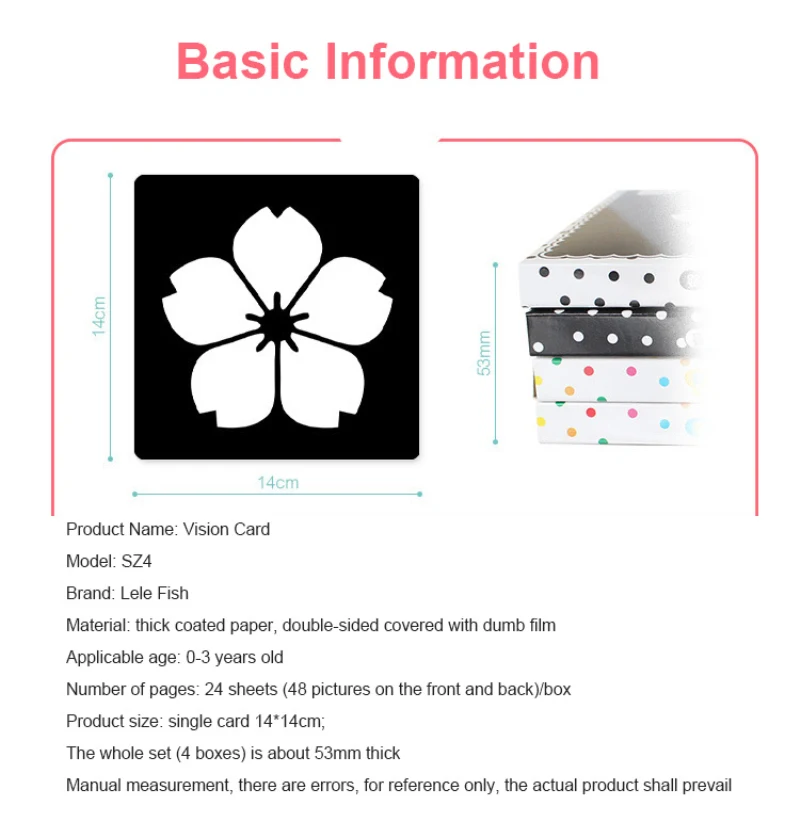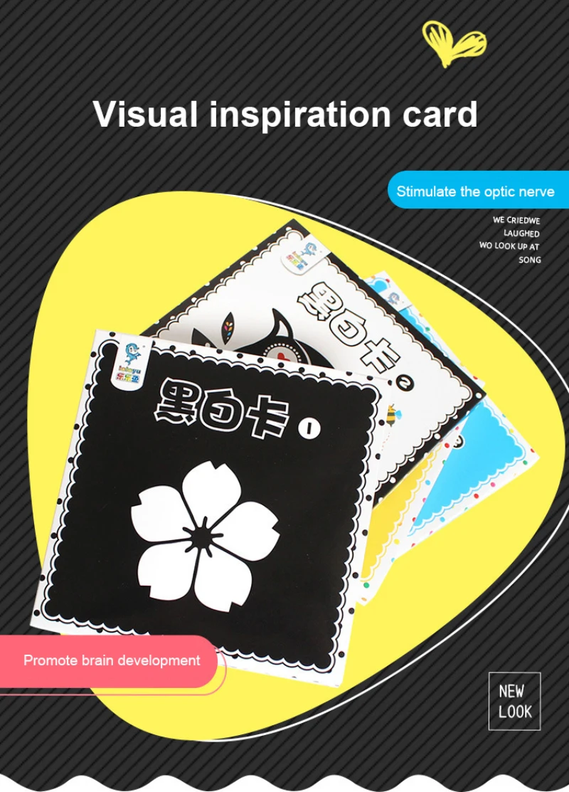 Addition Information of Little Baby Color Training Card Montessori Toys Black White Cards Kids Sensory High Contrast Visual Stimulation Learning Card