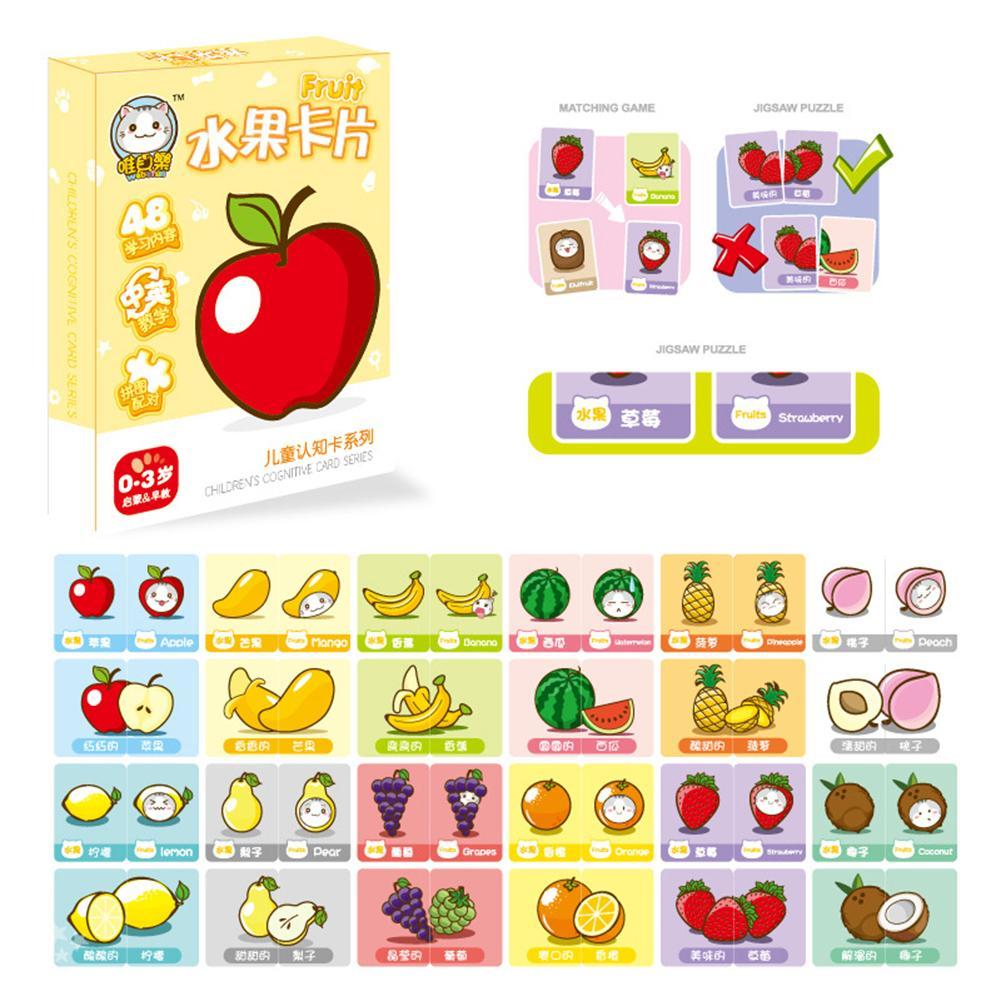 Special Offer of 48Pcs/Set Cartoon Animal Fruit Pairing English Chinese Cards Baby Learning Toy Toddler Early Education Cognition Toys