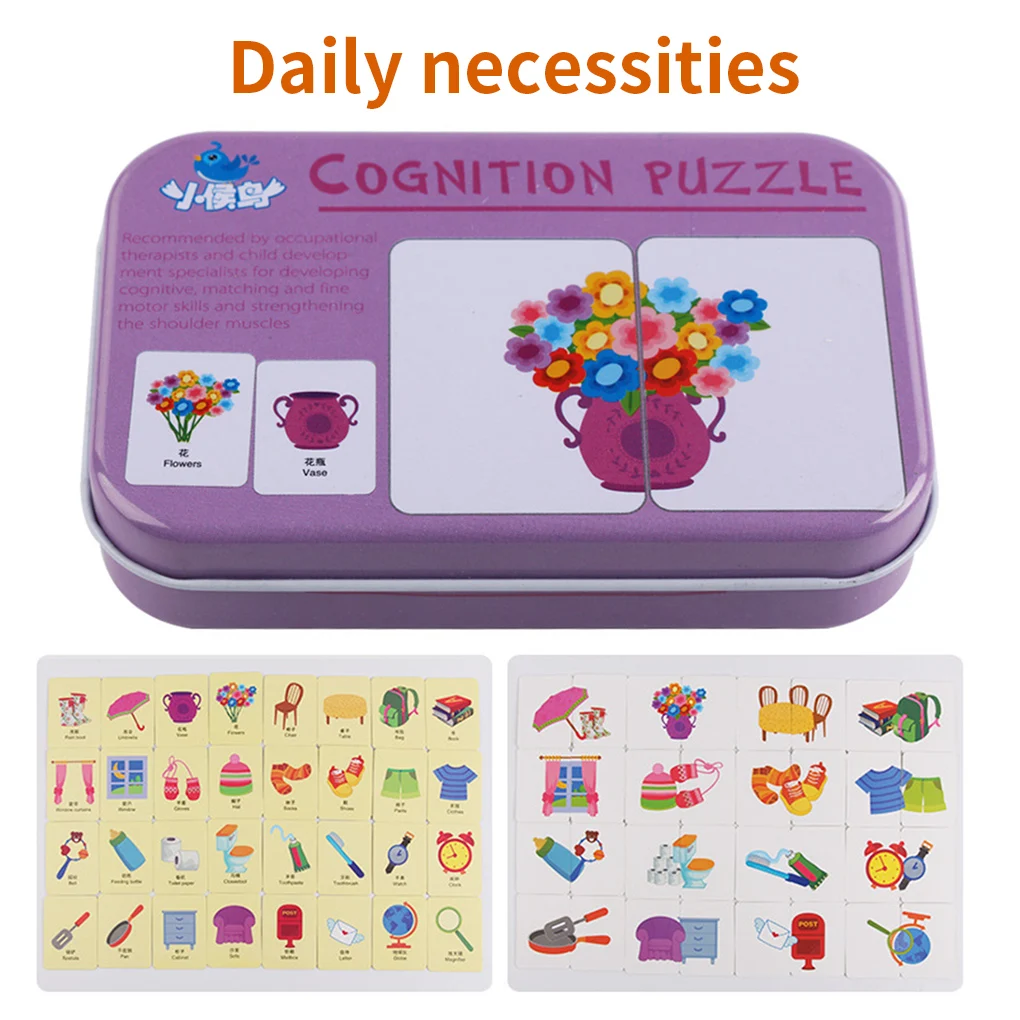 Kids Baby Cognitive Puzzle Cards Montessori Educational Toys Matching Game Cartoon Vehicle Animal Fruit English Learning Cards