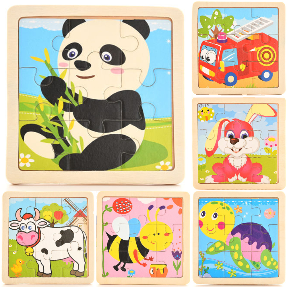 9pcs Wood Puzzle Baby Young Children Early Lessons Learned Intelligence Cartoon Animal Puzzle Wooden Toys