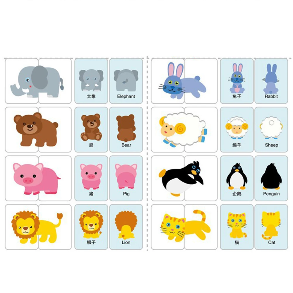 Buy 48Pcs/Set Cartoon Animal Fruit Pairing English Chinese Cards Baby Learning Toy Toddler Early Education Cognition Toys and You will Save USD 0.43 or 40% %, Because You Just Pay for 0.65 not Full Price for 1.08