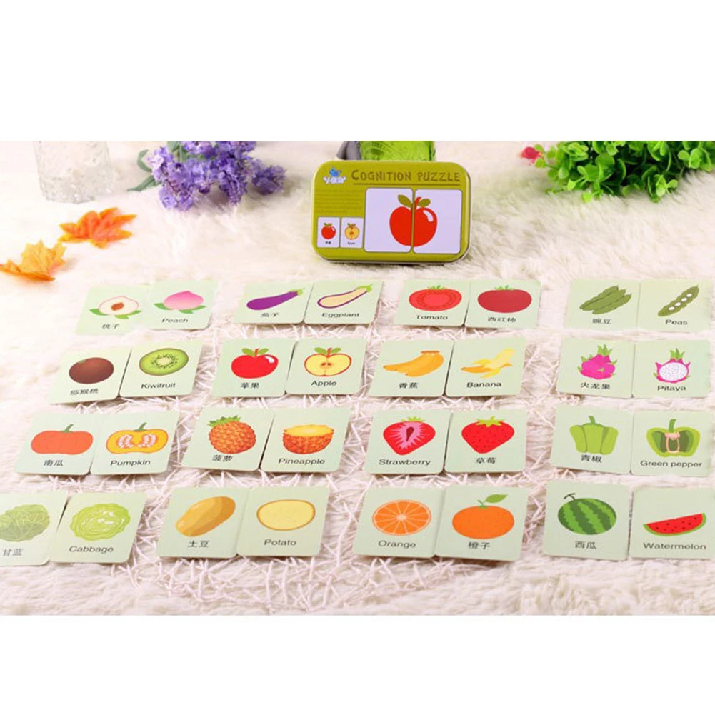 Baby Fruit Animal Cognition Cards Chinese English Learning Puzzles Toy Kids Educational Toys for Children Gifts