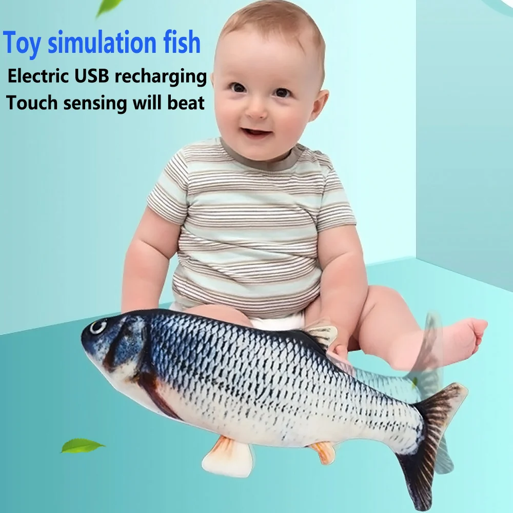 Vibrating Interative Dandcing Moving Fish Toy For Kids Baby Bitable Parent Washable Electronic Doll Stuffed Animals Plush Toys