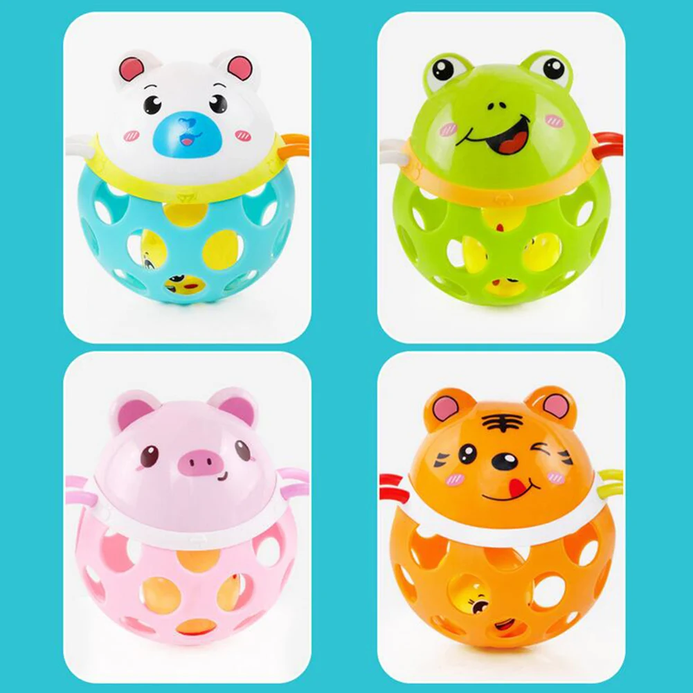 Baby Rattles Toy Cartoon Animal Soft Plastic Rattle Ball Hand Grip Bell Developmental Teething Toy Baby Educational Toddler Toy