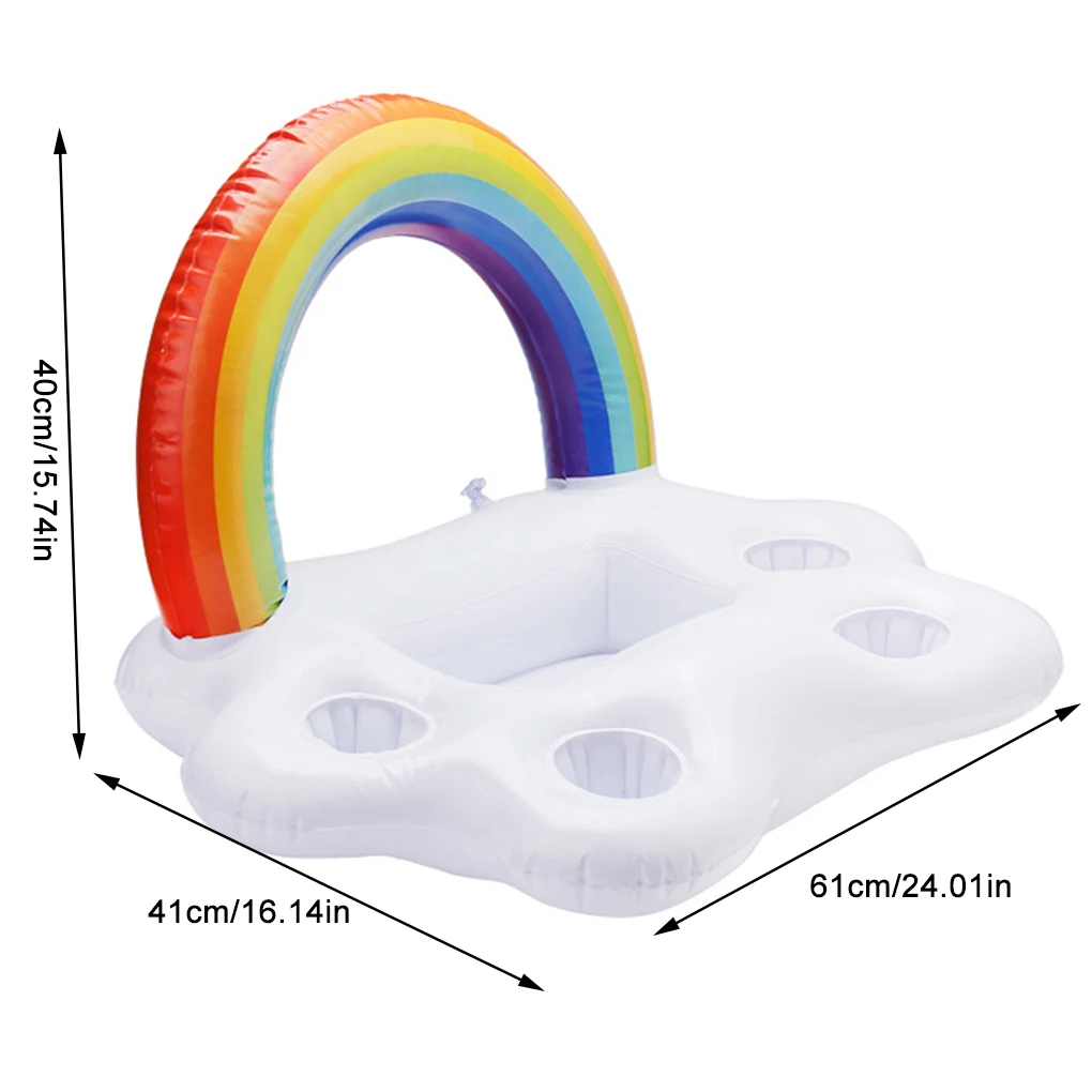 The inflatable cup holder is designed with rainbow and cloud appearance, is beautiful and sweet.