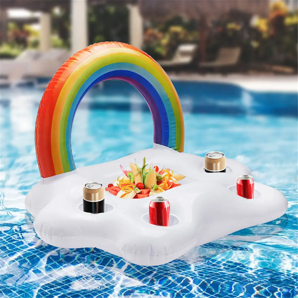 Summer Baby Toys Rainbow Cloud Inflatable Bar Swimming Pool Inflatable Cup Drink Holder Beach Pool Party Inflatable Coaster