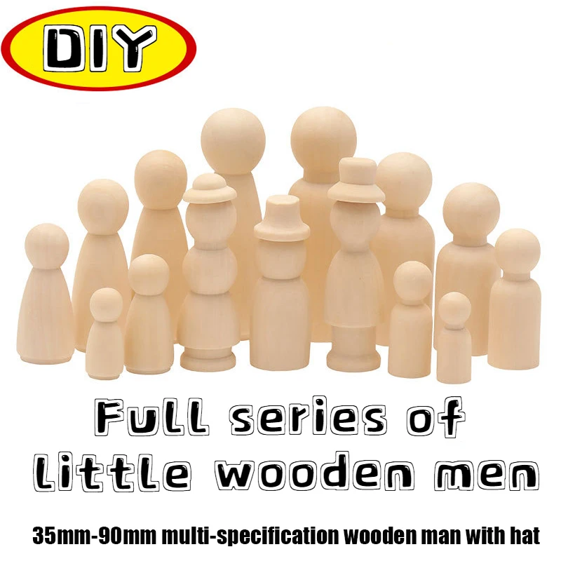 All series Wooden Doll 35-65mm Baby Blank Peg Dolls Teether Kid Room Decor Girl Boy DIY Unfinished Newborn Educational Toy